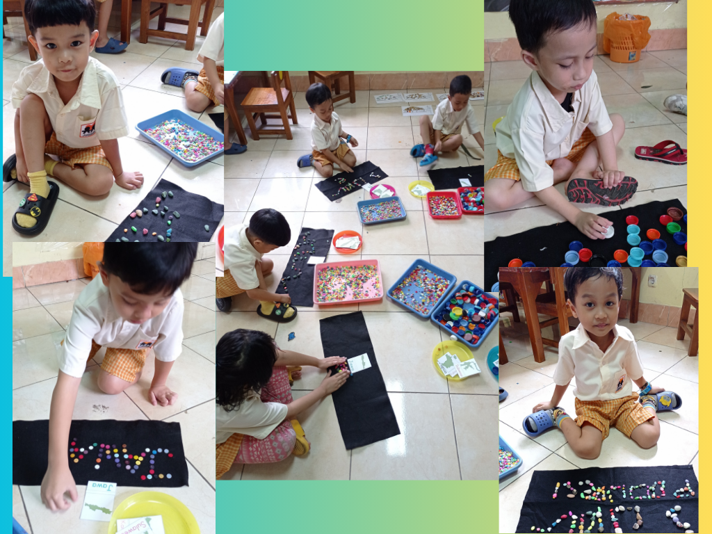 Build word Milk from loose parts